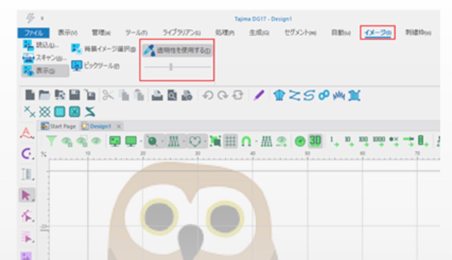 背景画像を入れ込んだ際に透明度を自由に調整可能。下絵をなぞるときにアンカーポイントが見やすくなり、デザイン作成がしやすくなります。