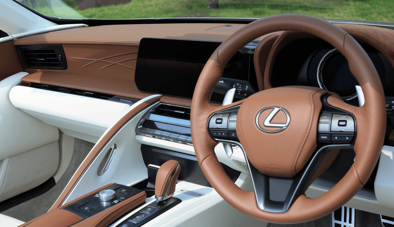 糸の角度や光の反射を丁寧に設計し、見る角度や時間帯によって表情が移ろうように仕上げられています。助手席と運転席で異なる色の見え方を楽しめるこの刺繍は、LEXUSが掲げる「TIMEの哲学」を体現したもの。乗るたびに新しい発見がある“時を感じる体験”として、LCの世界観をより深く印象づけます。