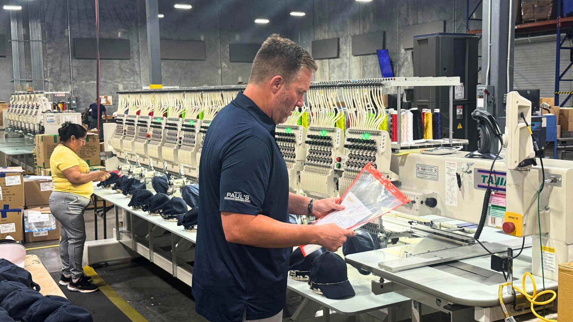 Our daily output has increased from about 30,000 pieces to approximately 50,000 pieces. That growth in production capacity, combined with the improved stability of Tajima machines, means we can now guarantee delivery times with much greater confidence — a major advantage in our business. We are also extremely satisfied with the support from Tajima, Tajima Software Solutions, and our U.S. distributor, Hirsch Solutions. Technicians respond quickly, and parts are stocked locally, so downtime is very rare. This strong service network has allowed us to maintain stable operations and meet customer demands without disruption.